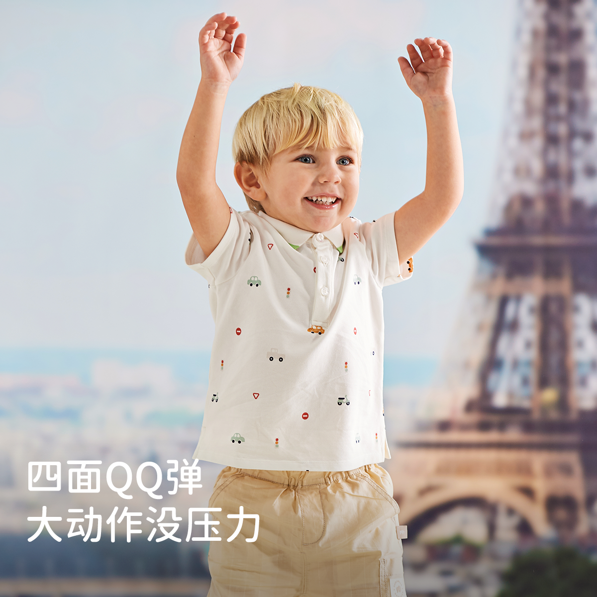 男宝宝洋气上衣 2024夏装 戴维贝拉男童短袖 T恤儿童印花POLO衫