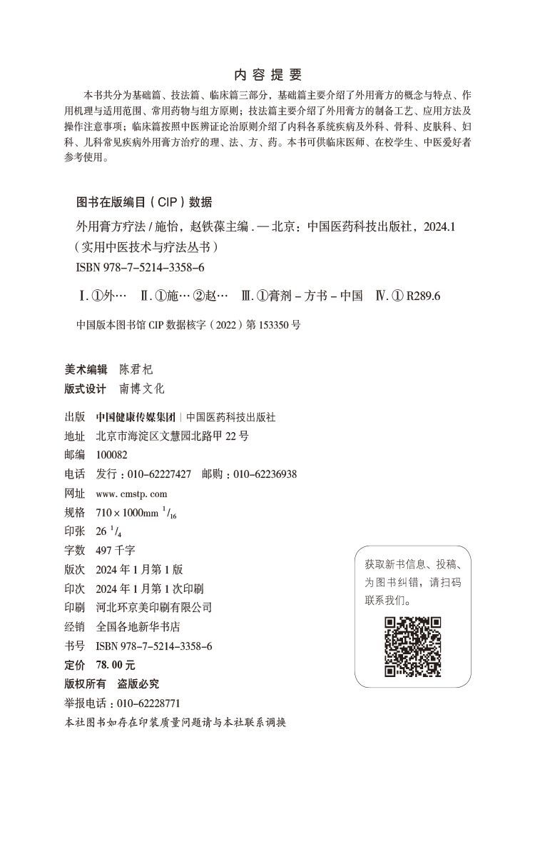实用中医技术与疗法丛书 中国医药科技出版 膏方概念与特点 常用药物与组方原则 9787521433586 作用机理与适用范围 外用膏方疗法