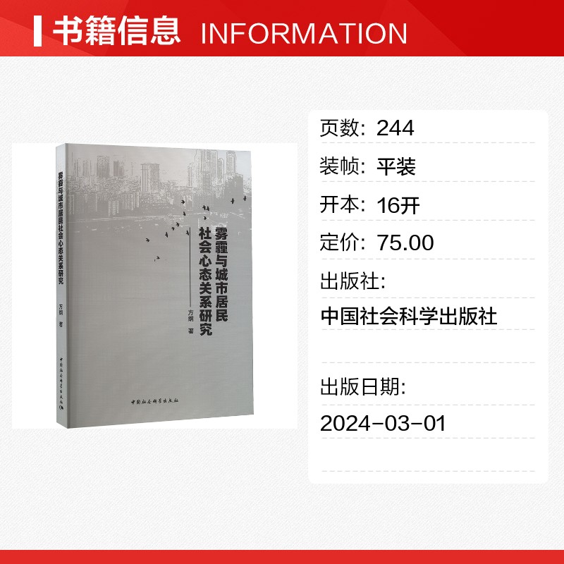 环境科学经管 励志 新华书店正版 雾霾与城市居民社会心态关系研究 中国社会科学出版 著 图书籍 社 方纲