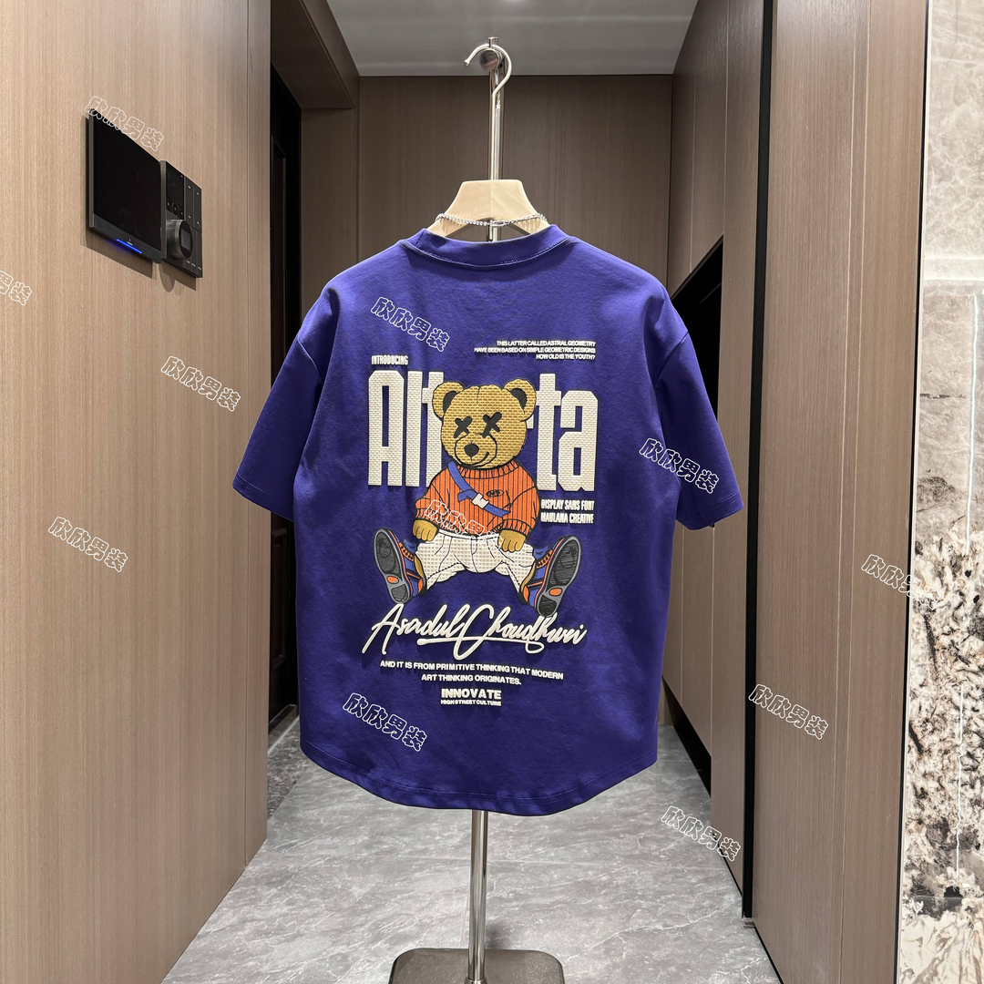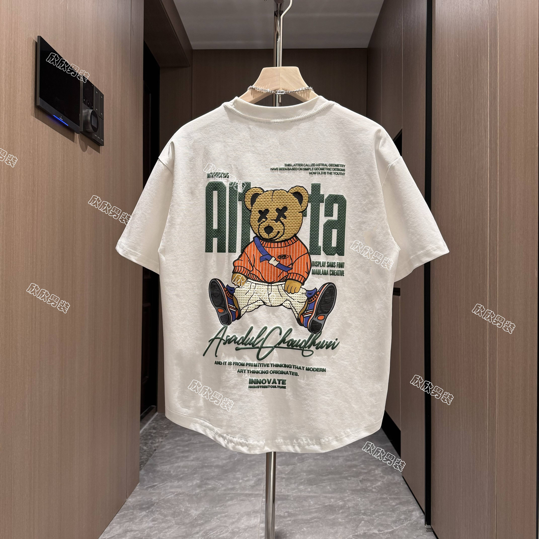 青年修身 ins潮牌潮流百搭半袖 衣服 t恤男2024夏季 网红小熊印花短袖