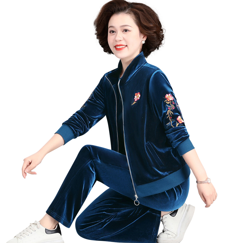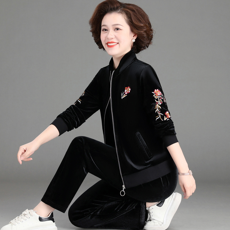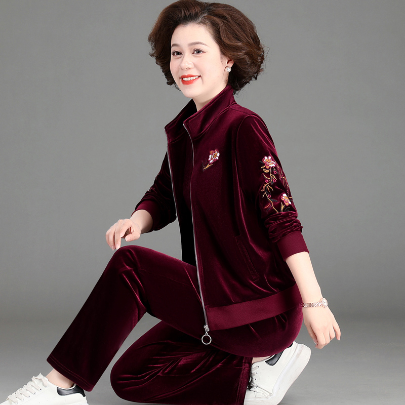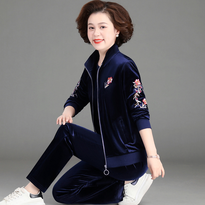 休闲卫衣三件套 气质中老年金丝绒运动服套装 妈妈装 外套女春秋时尚