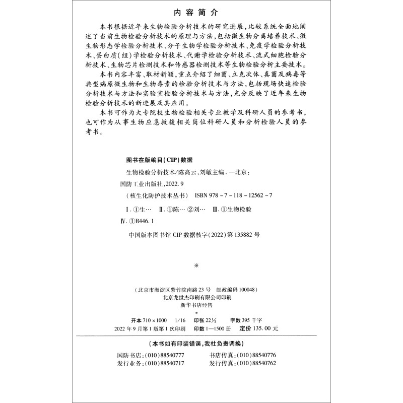 微生物分离培养技术 核生化防护技术丛书 原理与方法 当前生物检验分析技术 微生物形态学检验分析技术等技术 生物检验分析技术