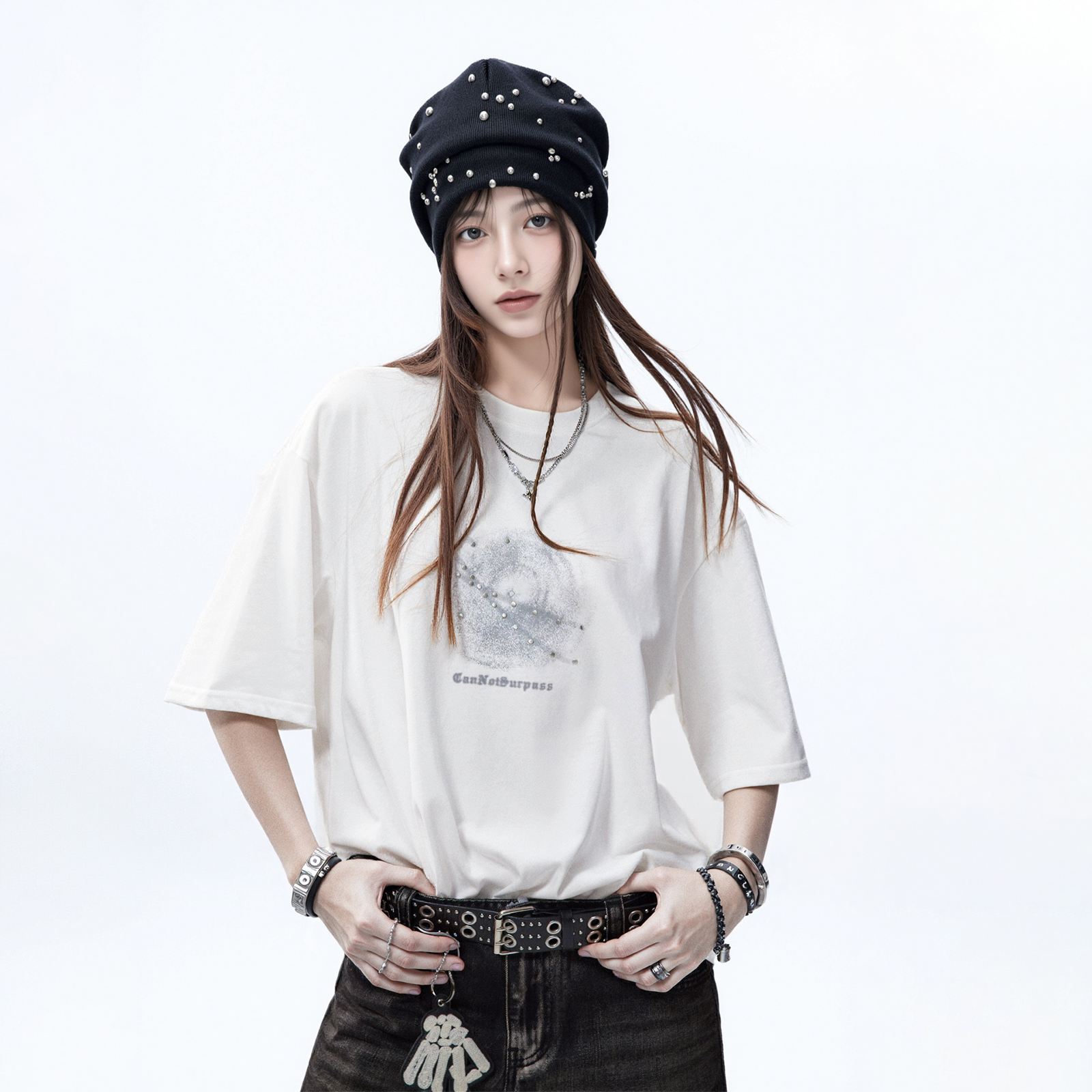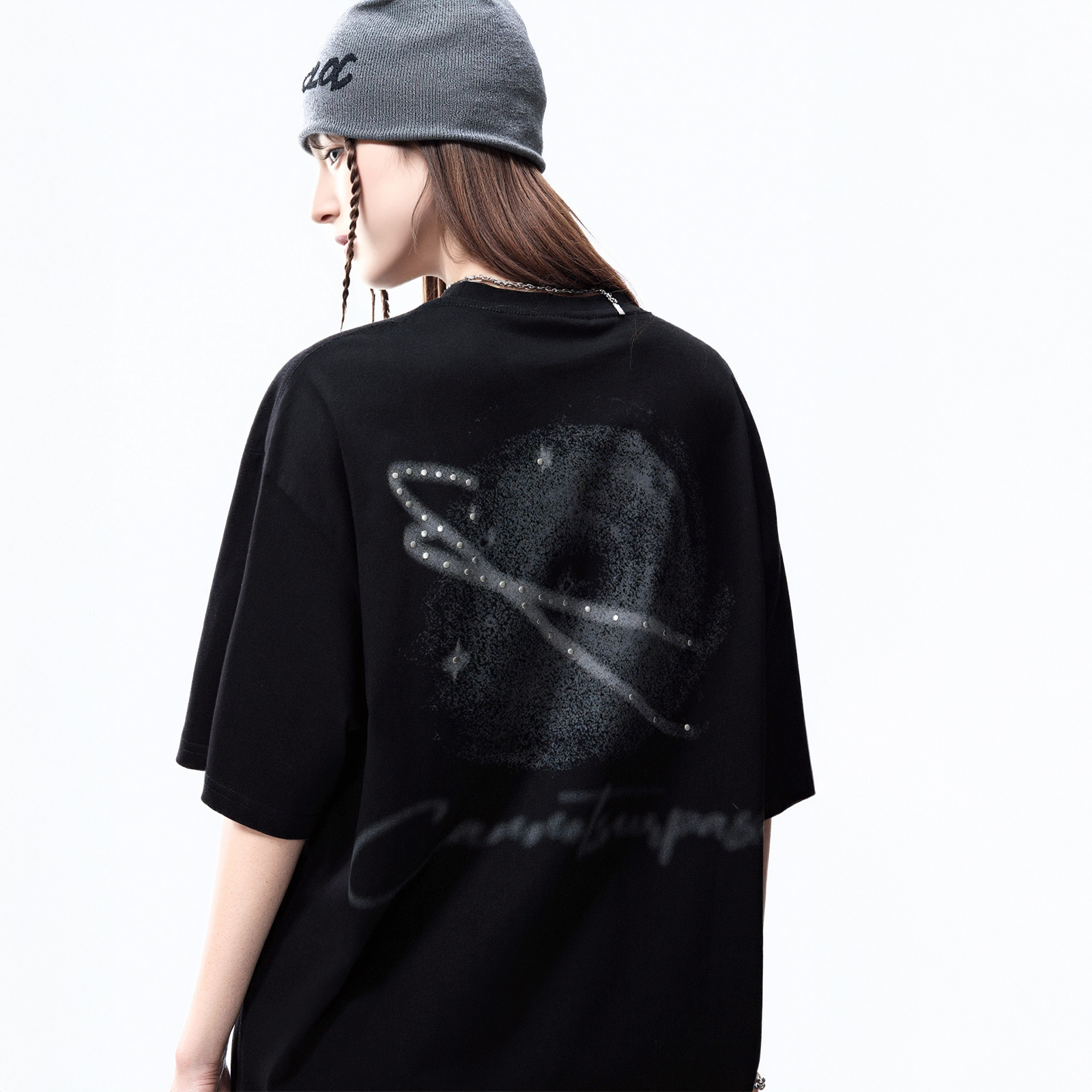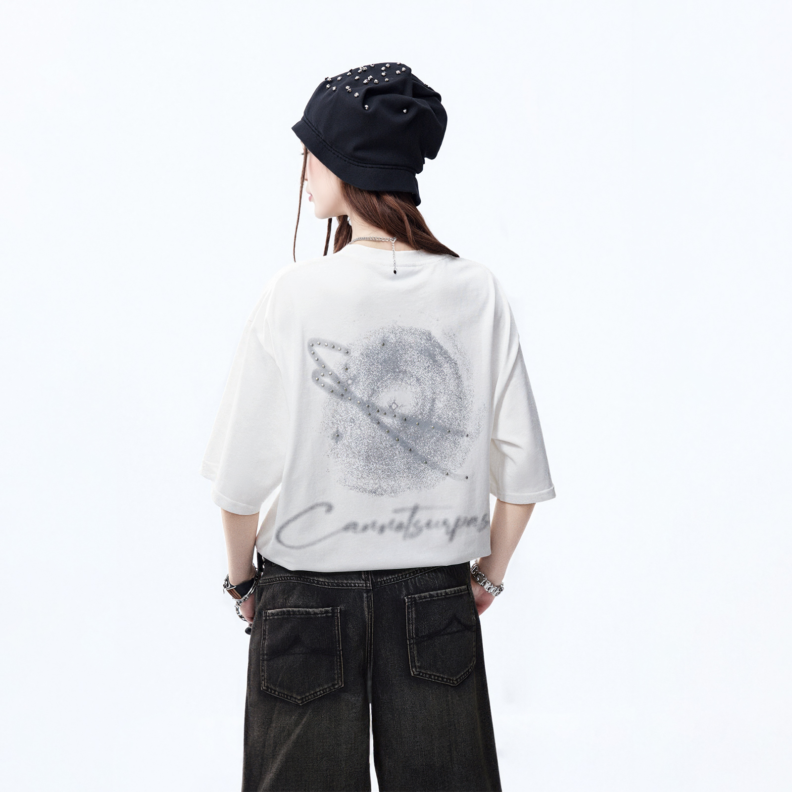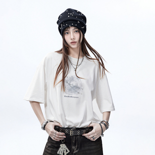 半袖 潮牌铆钉印花短袖 纯棉情侣装 新款 宽松oversize上衣 t恤女夏季