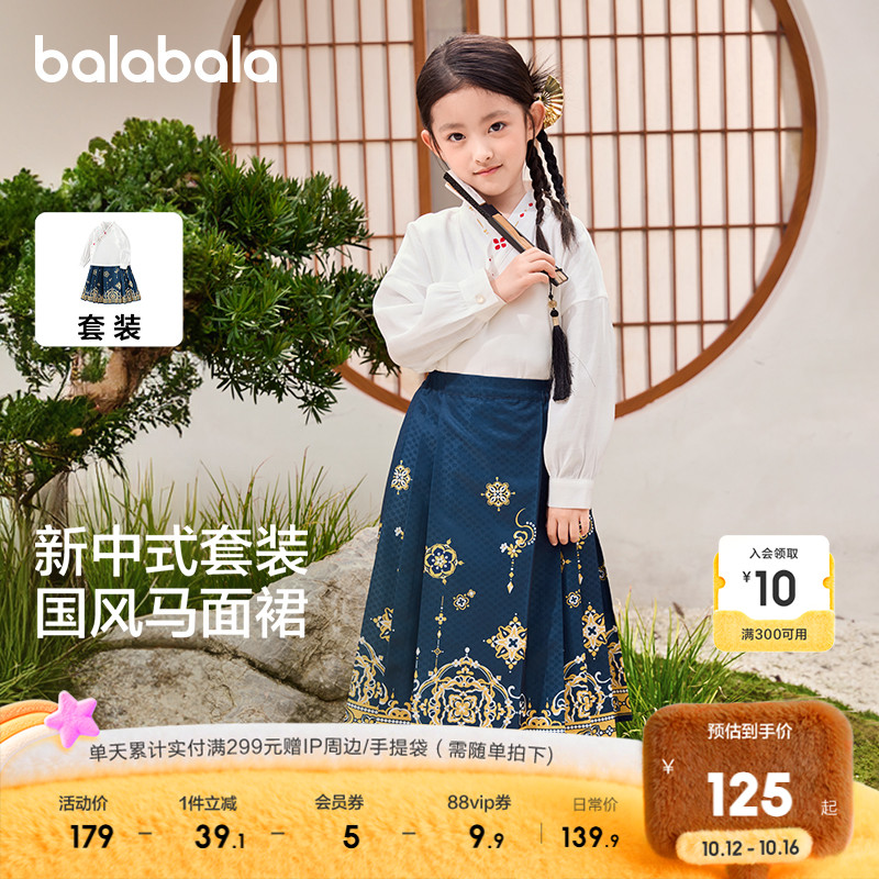 薄款 巴拉巴拉女童套装 新款 衣服秋季 国风马面裙两件套 儿童长袖