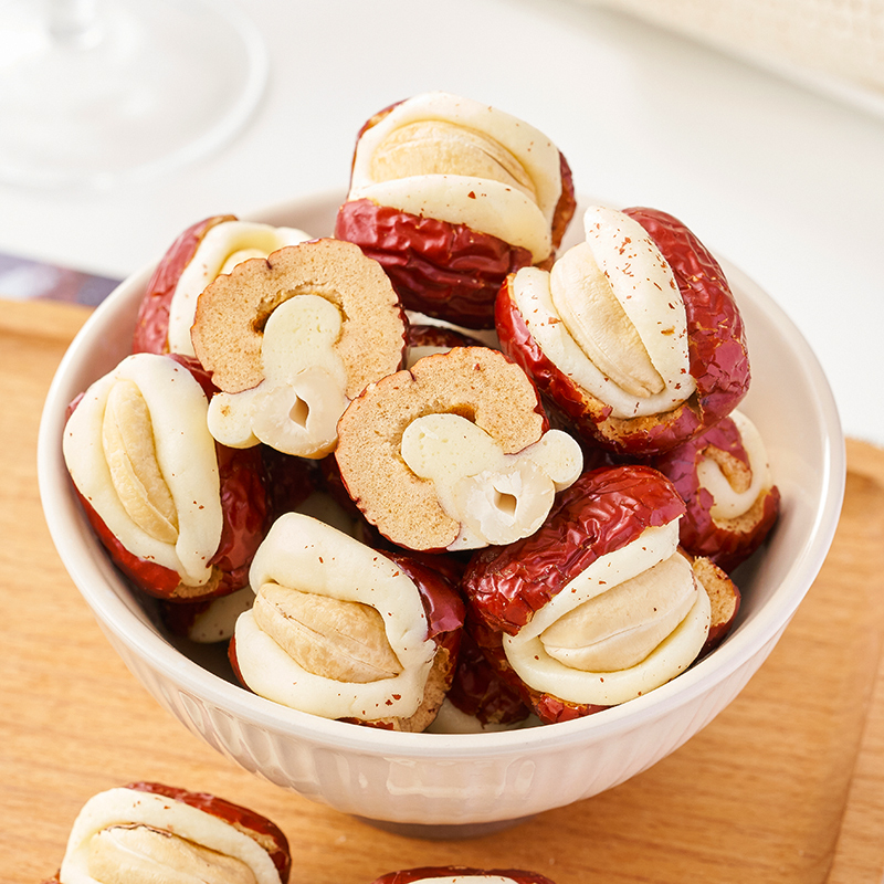 腰果泡芙枣独立小包装 网红夹心红枣奶酪枣新疆特产抱抱果休闲零食