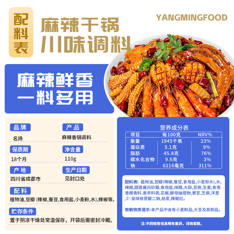 名扬调味料麻辣香锅调料菌汤调料鲜香美味四川成都特产干锅酱