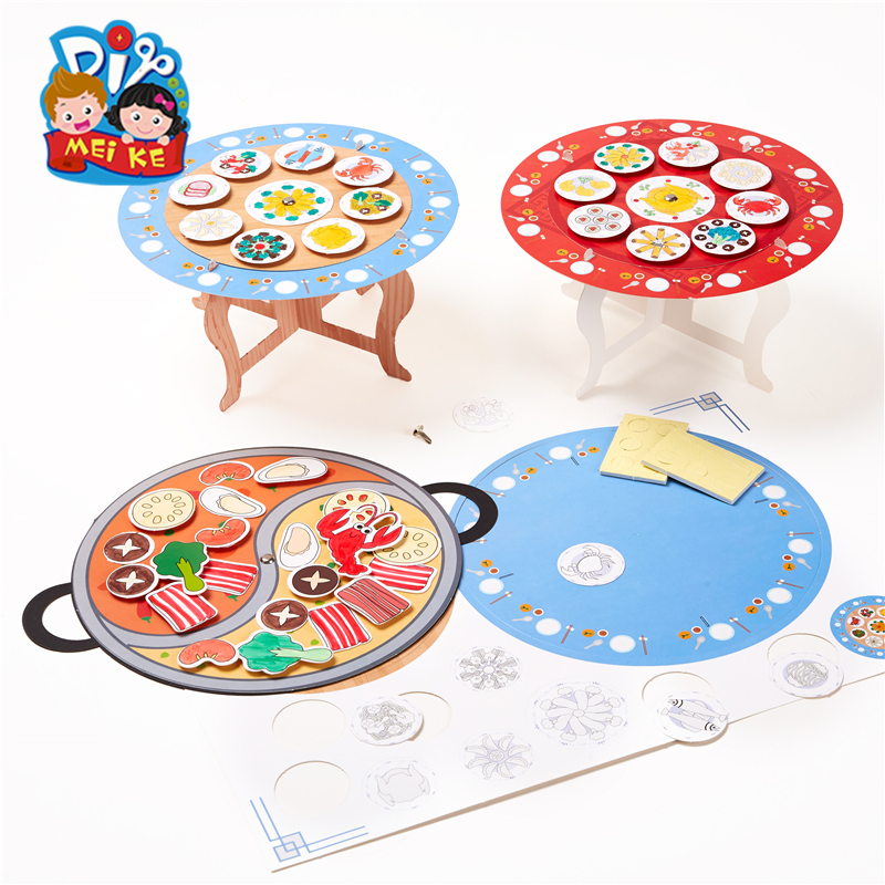 新年手工diy年夜饭儿童创意美术绘画制作涂色玩具作品幼儿园材料