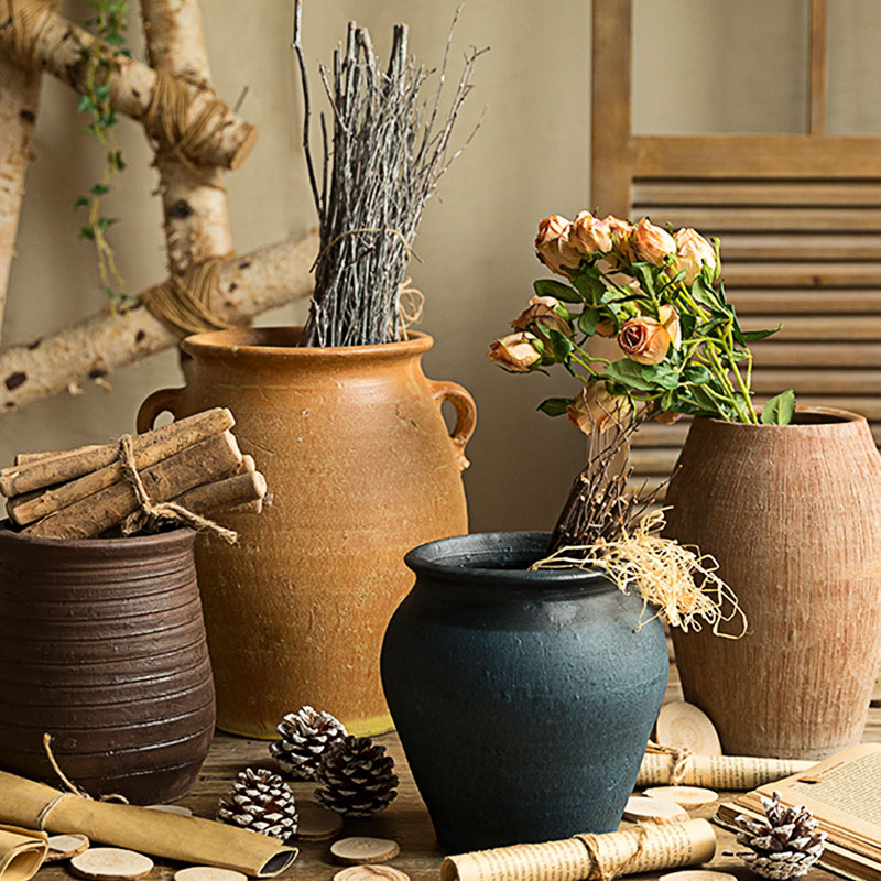 粗陶陶罐花瓶摆件花盆客厅美式 复古瓶子创意做旧仿古土陶盆插干花