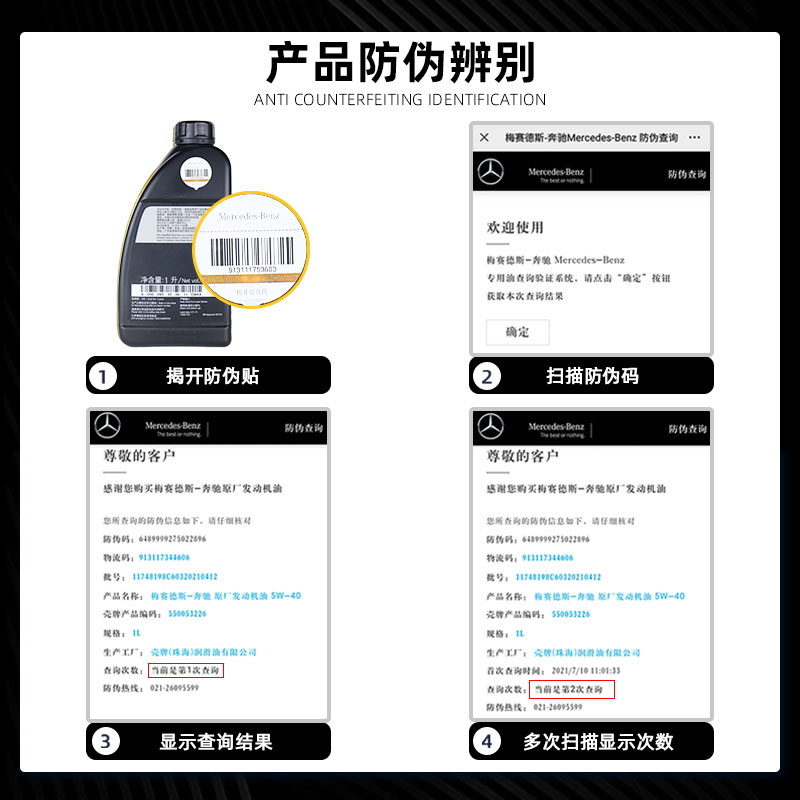 适配奔驰正品 通用全合成发动机润滑油 AMG高性能原厂机油0W40四季