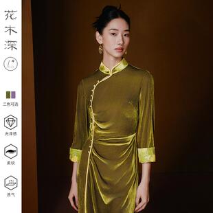 中式 MELINDA 博主同款 玲珑 冠乐绉提花桑蚕丝人丝旗袍连衣裙