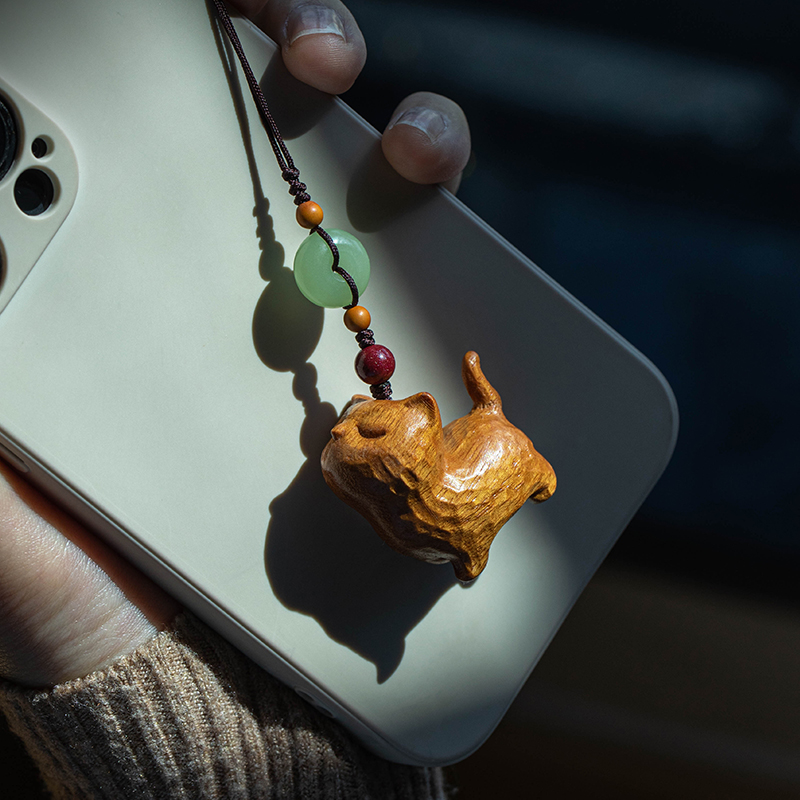 朴房原创招财猫手机链挂件创意手工雕刻可爱猫咪钥匙扣小礼物男女