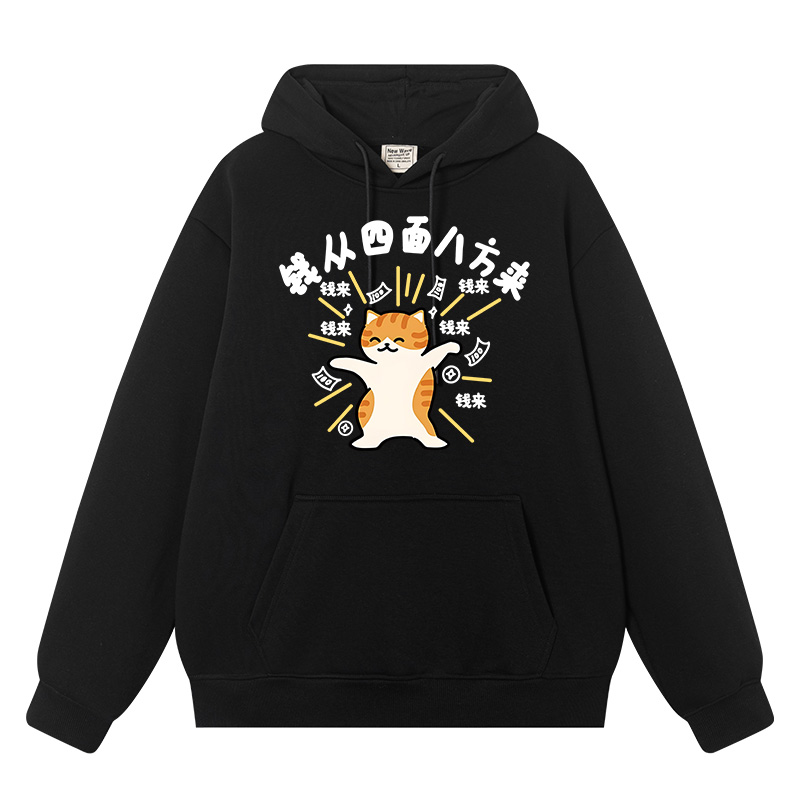 情侣装 秋冬季 钱从四面八方来趣味连帽卫衣男女学生长袖 秀洛