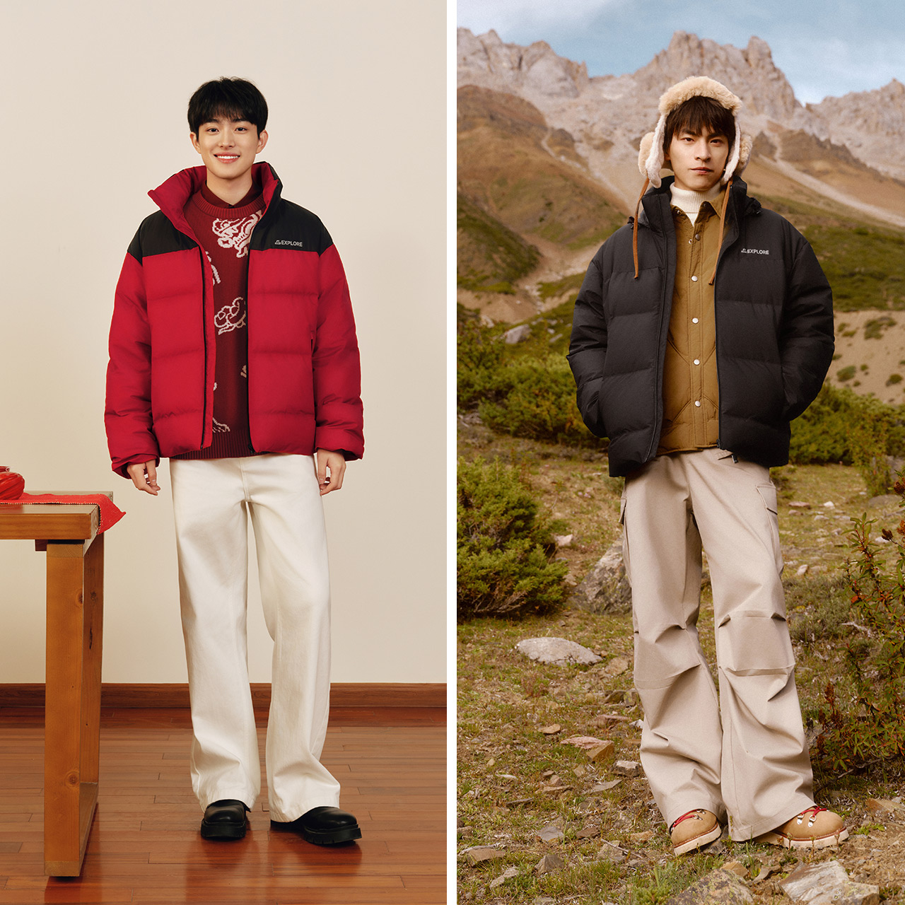 巴恩风翻领保暖防寒服潮 新款 太平鸟男装 夹克羽绒服男2025年冬季