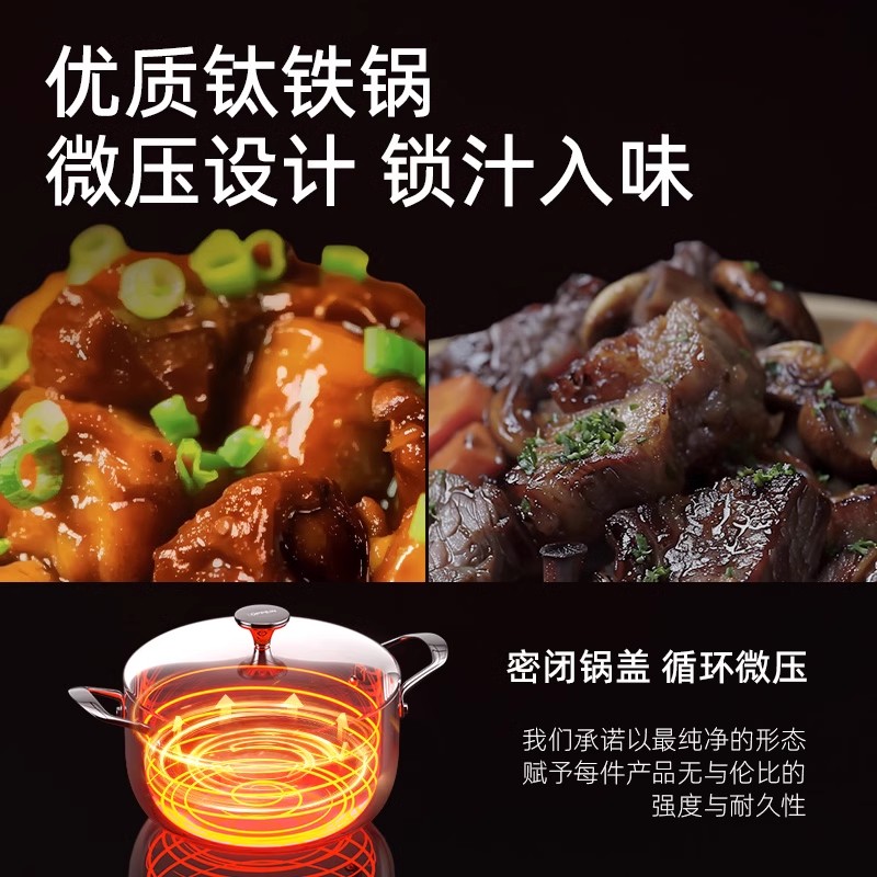 欧派无涂层汤锅家用2025新款 蒸煮炖锅电磁炉用无涂层微压煲汤煮锅