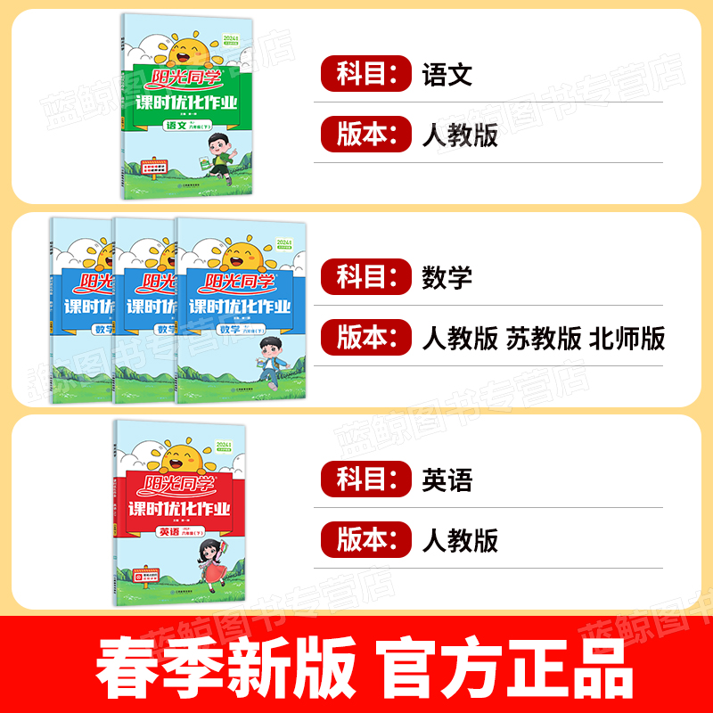 苏教北师大译林同步练习册6年级上下册2024秋 2025春新版 六年级下册阳光同学课时提优训练优化作业本小学语文数学英语全套人教版
