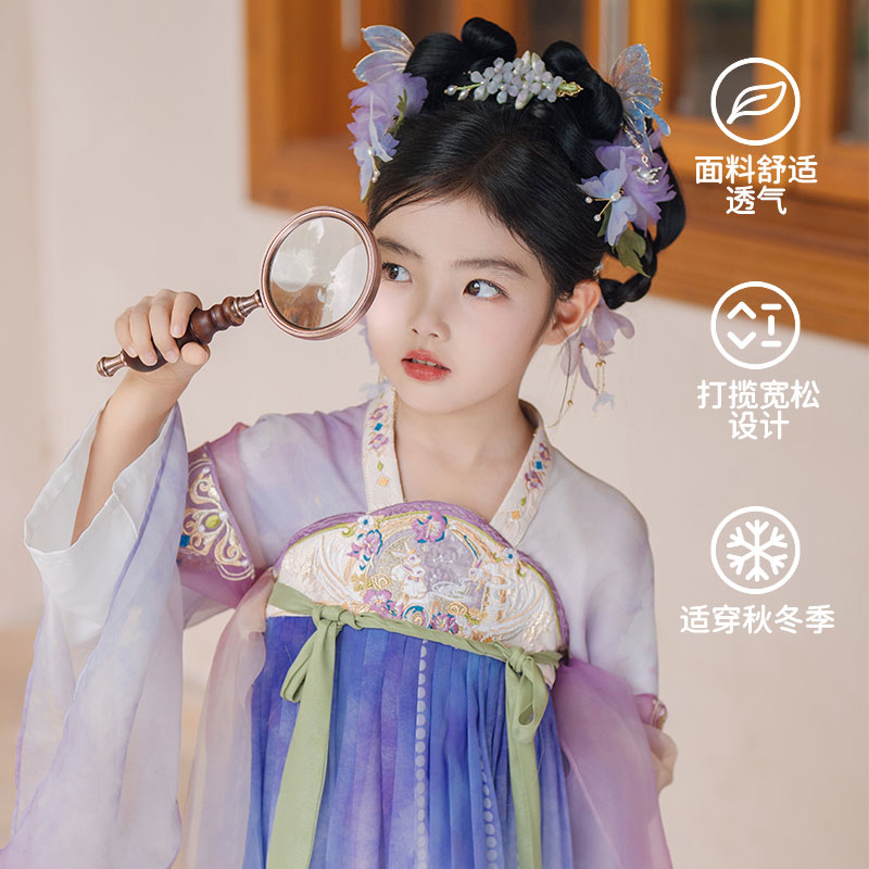 仙气国风刺绣连衣裙 汉服襦裙女童2025秋新款 月镜瑶台 观山见童装