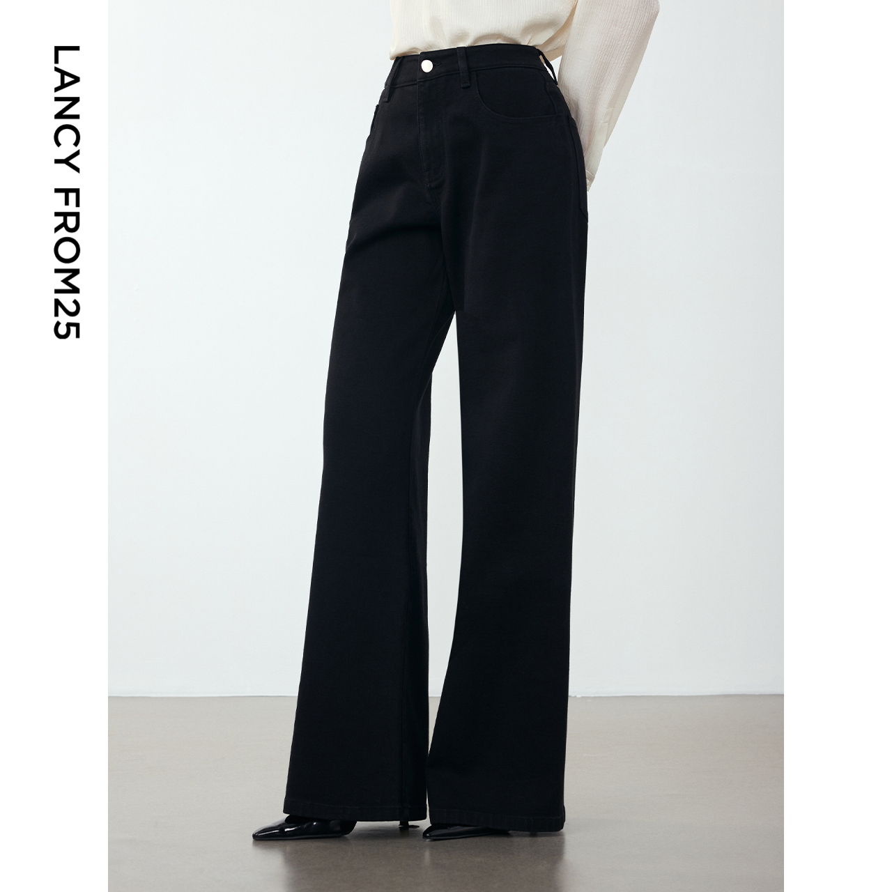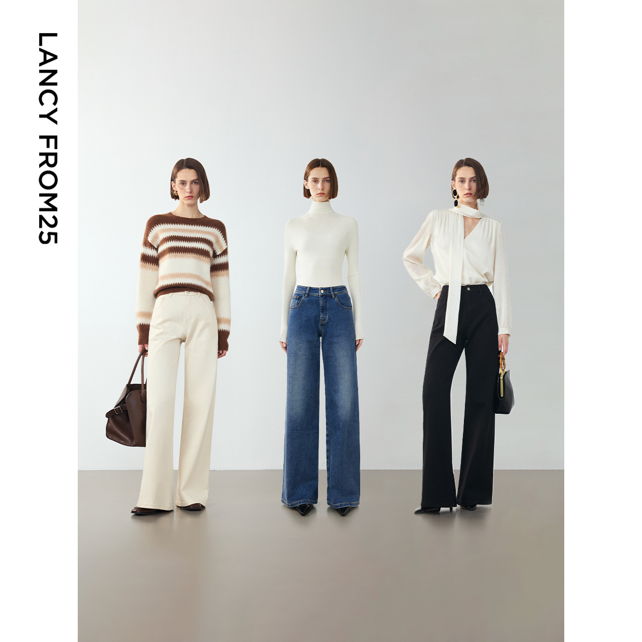 明星同款 法式 朗姿醋酸阔腿休闲气质长裤 新款 牛仔裤 女2024冬季