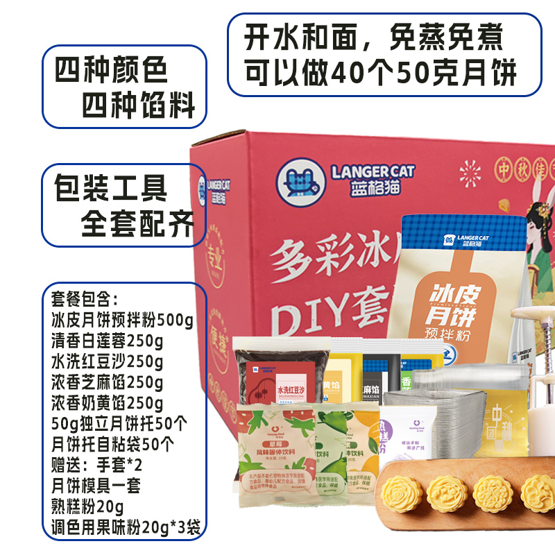 多彩冰皮月饼DIY组合中秋套装 礼盒预拌粉材料套餐团购福利团建
