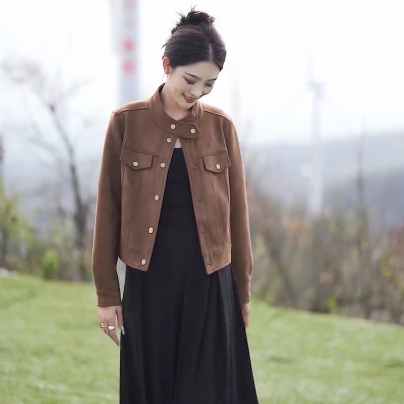 摇粒绒外套小香风上衣千金风气质开衫 女士短款 新款 雪中飞2025秋季