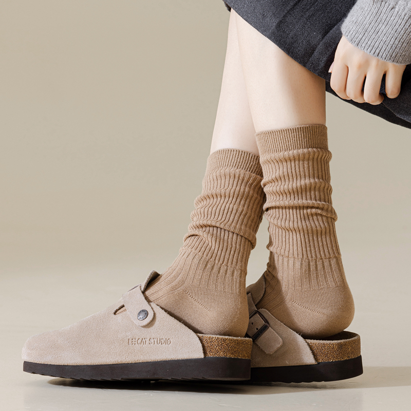 袜子 纯棉白色春秋乐福小皮鞋 加长新款 堆堆袜女搭配小皮鞋