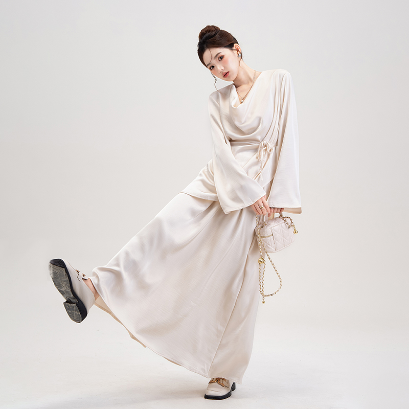 气质荡领不规则上衣高腰半身裙早秋穿搭一整套 女法式 2025新款 套装