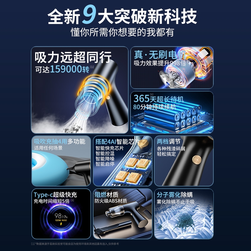 车载吸尘器大吸力超强车用无线小型机手持吸吹两用枪汽车内大功率