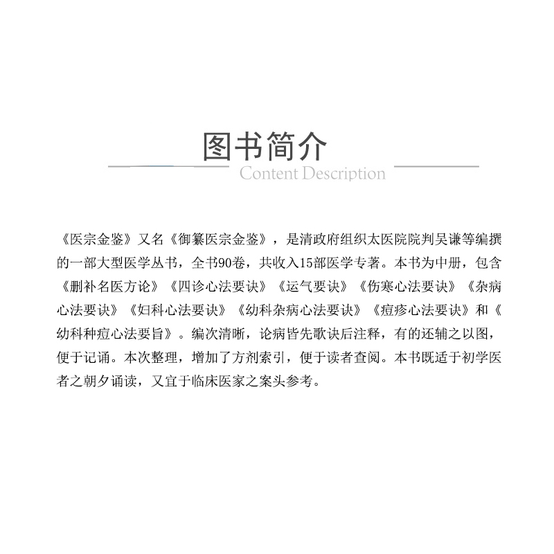 吴谦等编 既适于初学医者之朝夕诵读 又宜于临床医家之案头参考 医宗金鉴 社 清 中国医药科技出版 9787521447019 中册