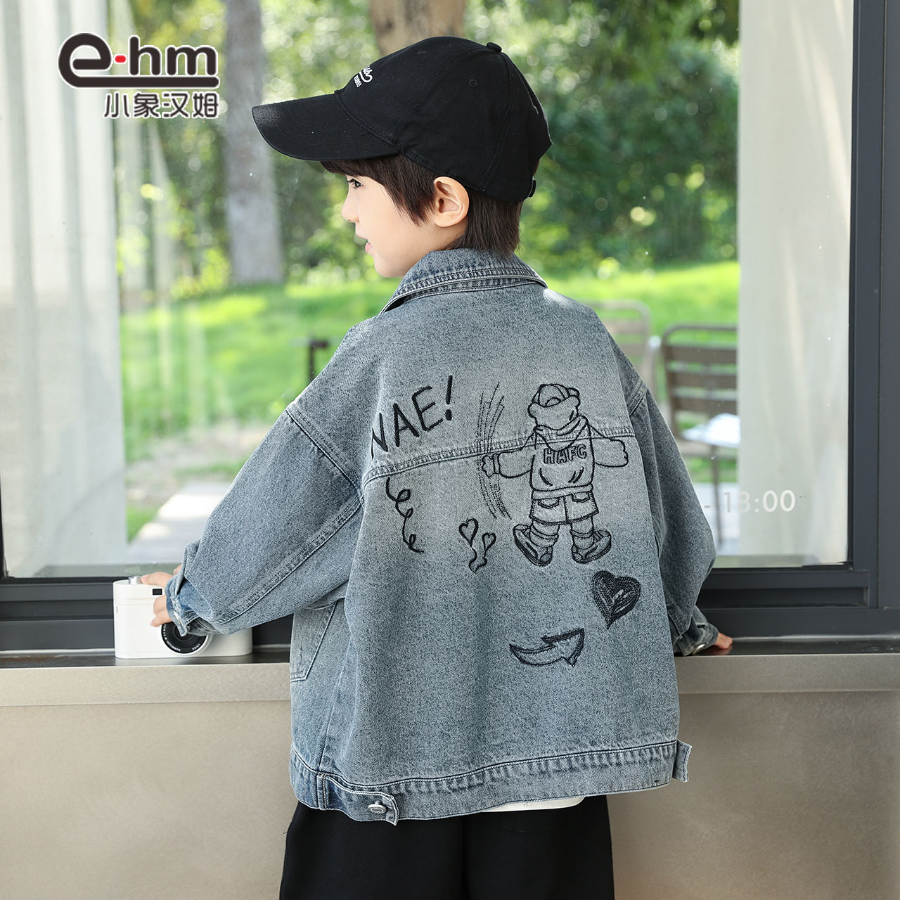 可爱小熊时尚 2025新款 儿童牛仔外套宝宝上衣男童秋装 巴拉巴拉童装