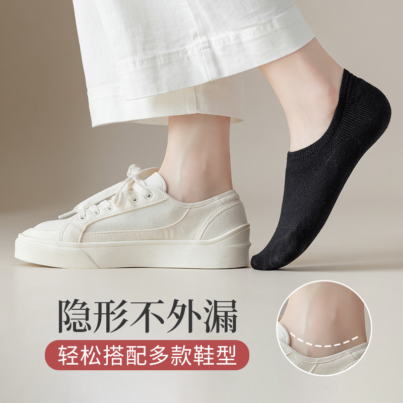船袜女纯棉春秋夏季 短袜全棉隐形浅口防滑不掉跟夏天袜子女士 薄款