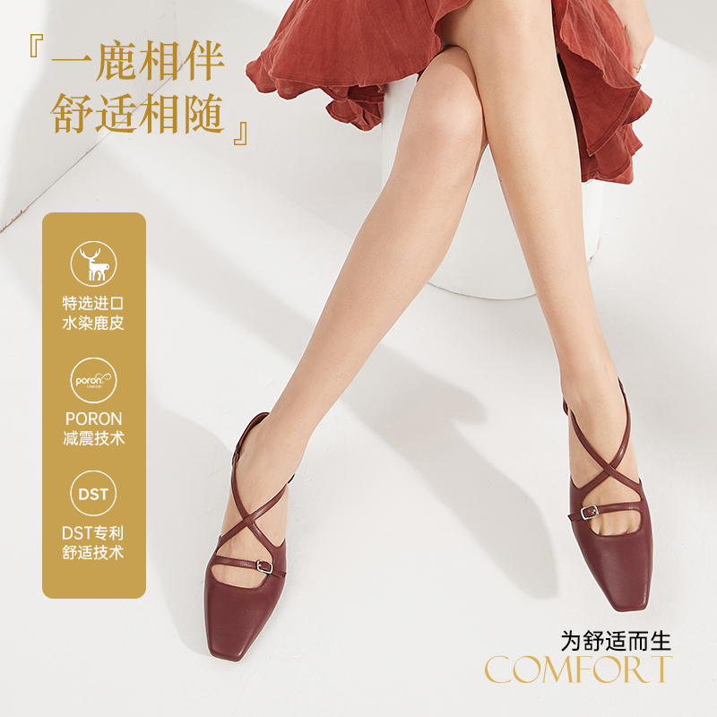 女 羊皮芭蕾玛丽珍单鞋 董洁董璇小酒窝同款 真美诗摩卡慕斯25秋新款
