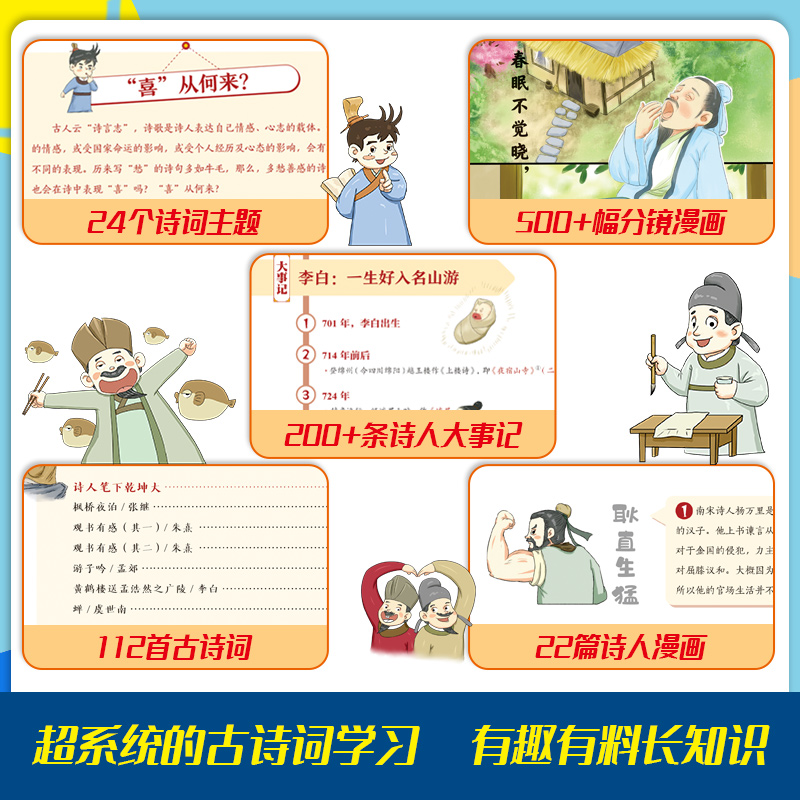 12岁 漫画古诗词全5册小学生必背古诗词唐诗宋词诗歌诵读人教版 80首古诗唐诗三百首6 绘本图画书少儿动漫书 112首漫画中国历史75