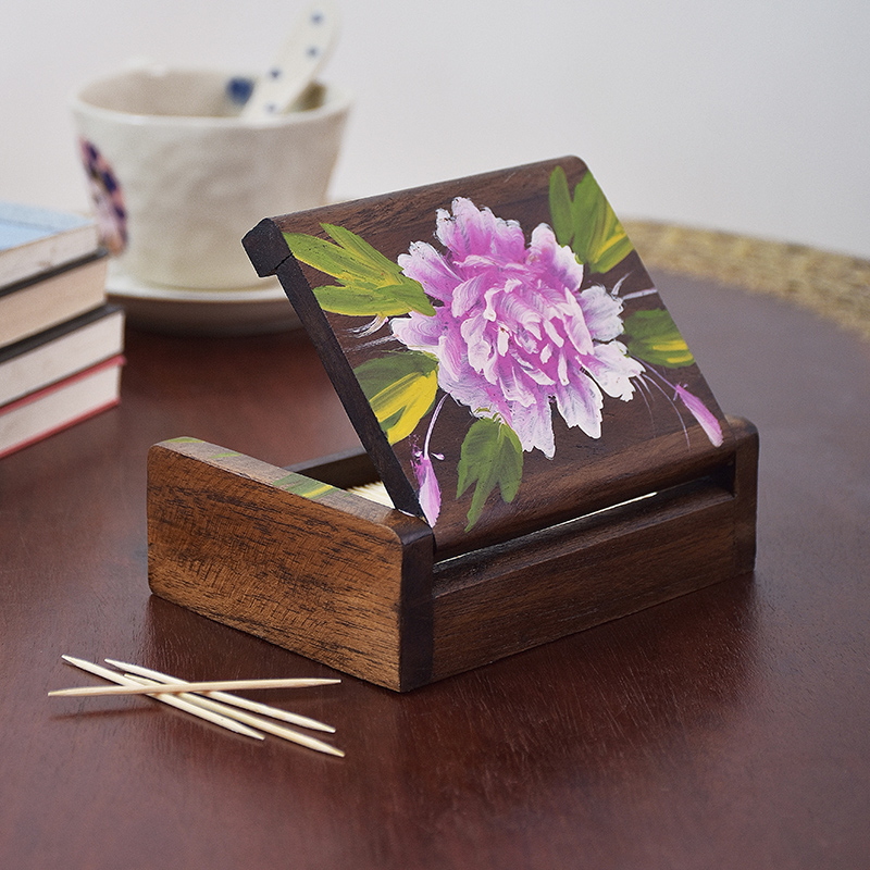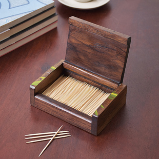 牙签盒家用时尚 棉签盒茶几翻盖牙线盒 轻奢酒店桌面实木牙签筒中式