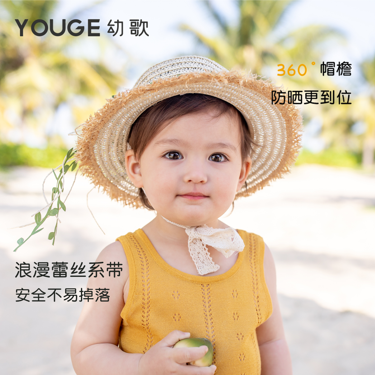 YOUGE幼歌 藤条蕾丝防晒草帽婴儿精致透气浪漫遮阳帽 儿童甜美法式