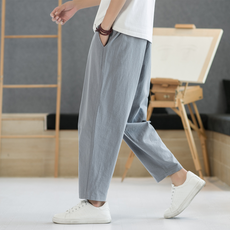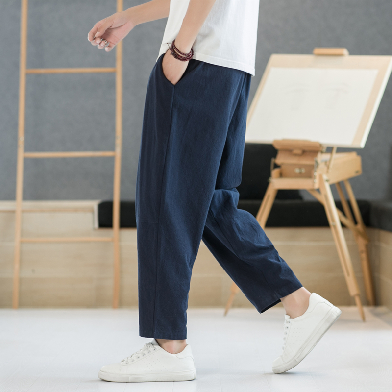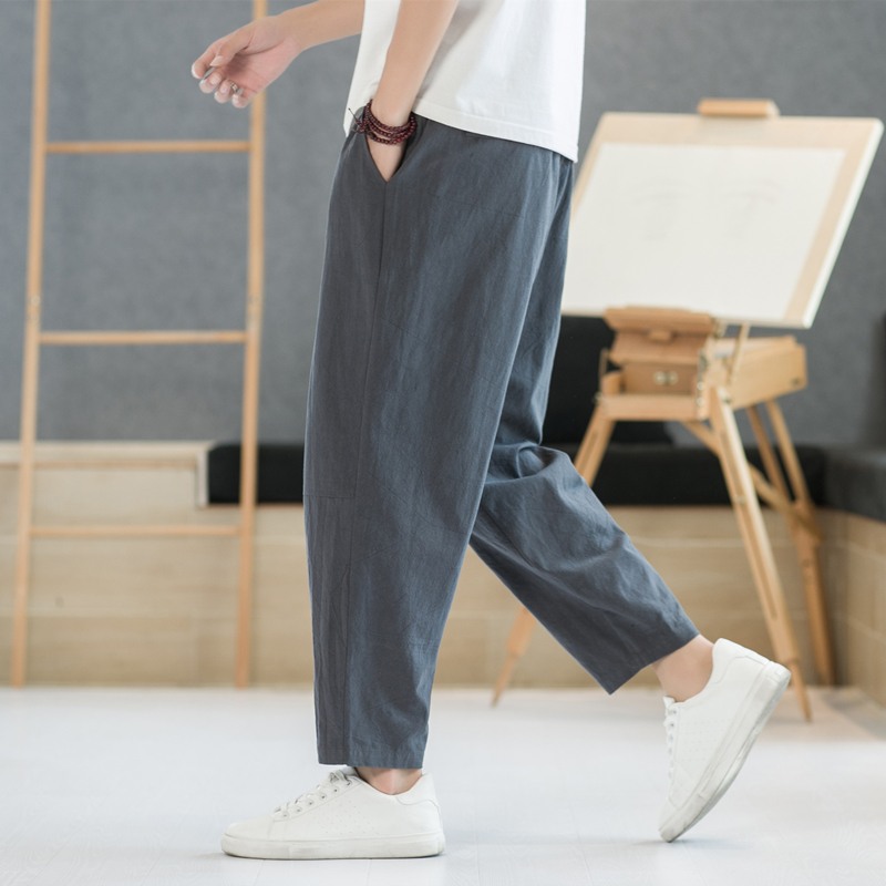 裤 子中国风男装 宽松阔腿裤 亚麻裤 胖子哈伦裤 春秋季 休闲裤 男士 唐装