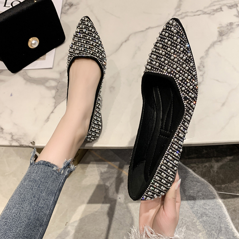 春季 女2024年新款 时尚 珍珠软底瓢鞋 法式 子平底休闲单鞋 尖头豆豆鞋