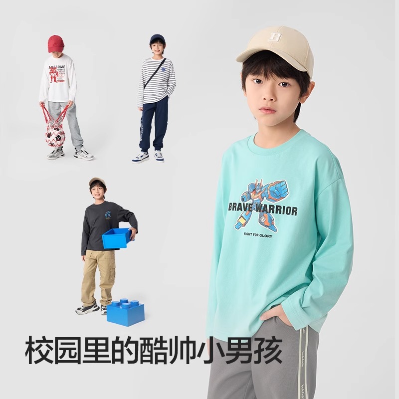 新款 儿童条纹上衣2025秋装 T恤中大童纯棉打底衫 巴拉巴拉男童长袖