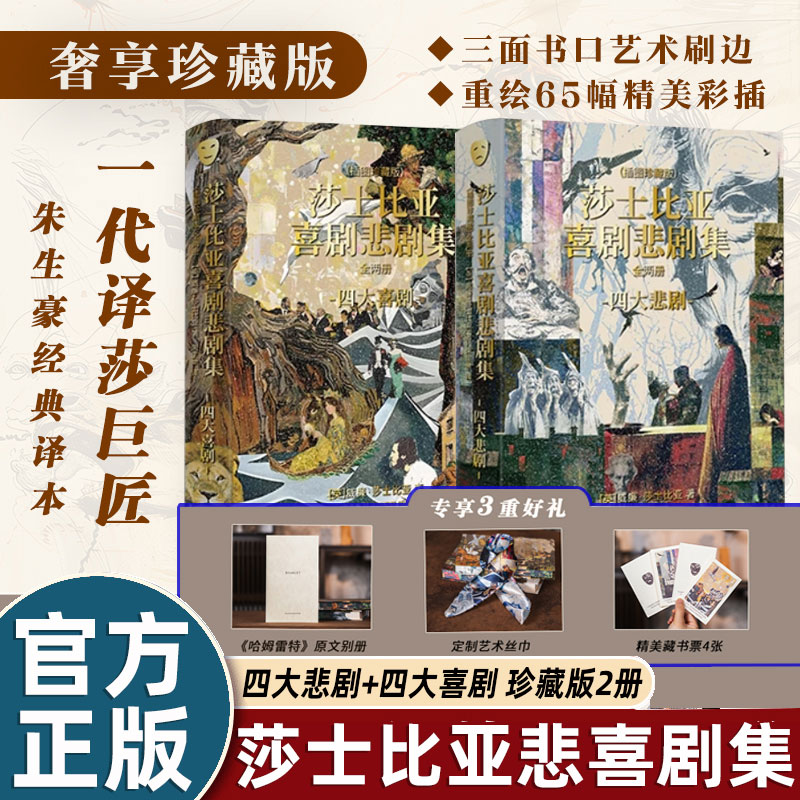 哈姆雷特别册 全2册精装 莎士比亚喜剧悲剧集 赠藏书票 刷边特 丝巾 插图珍藏版 十点读书莎士比亚四大悲剧四大喜剧