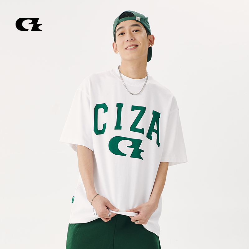 大logo字母国潮牌圆领半袖 宽松纯棉夏季 t恤男女情侣美式 ciza短袖