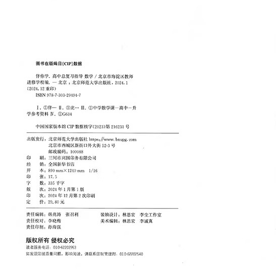北京师范大学出版 2025版 原海淀名师伴你学高考总复习指导 数学 社 伴你学高中总复习指导