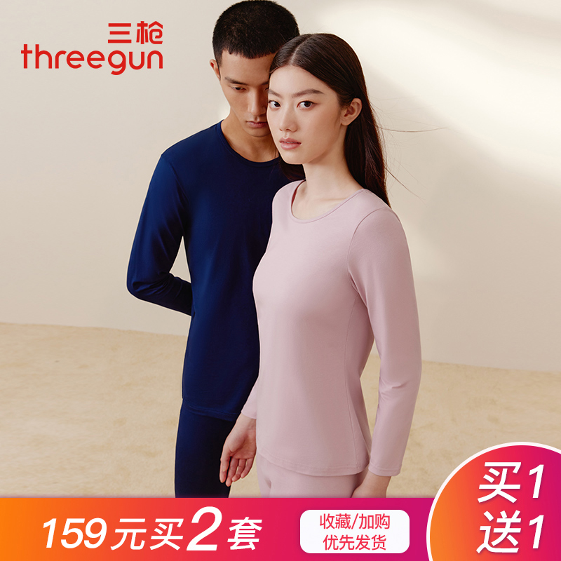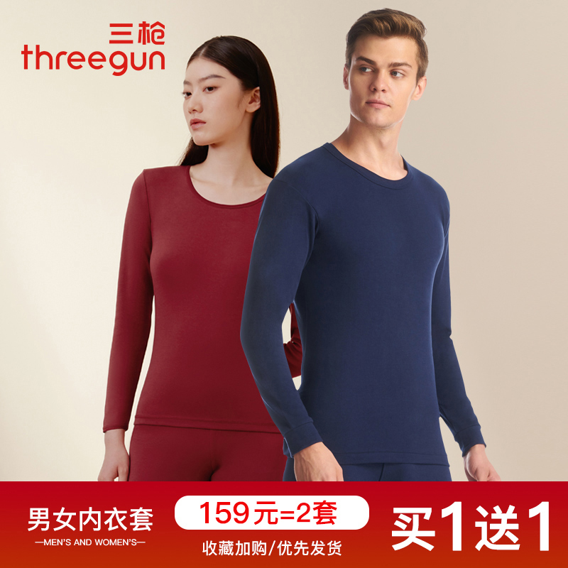 保暖内衣男士 纯棉秋冬圆领情侣基础防寒打底衫 女套装 三枪秋衣秋裤