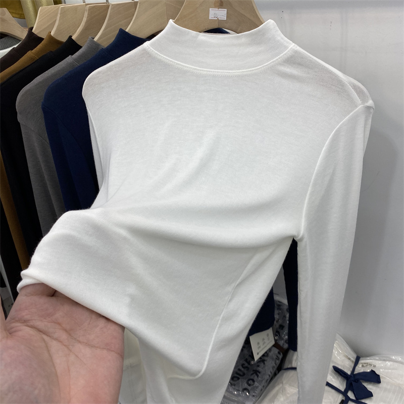 显瘦打底衫 修身 上衣服 T恤女2021早秋新款 欧货纯色百搭半高领长袖