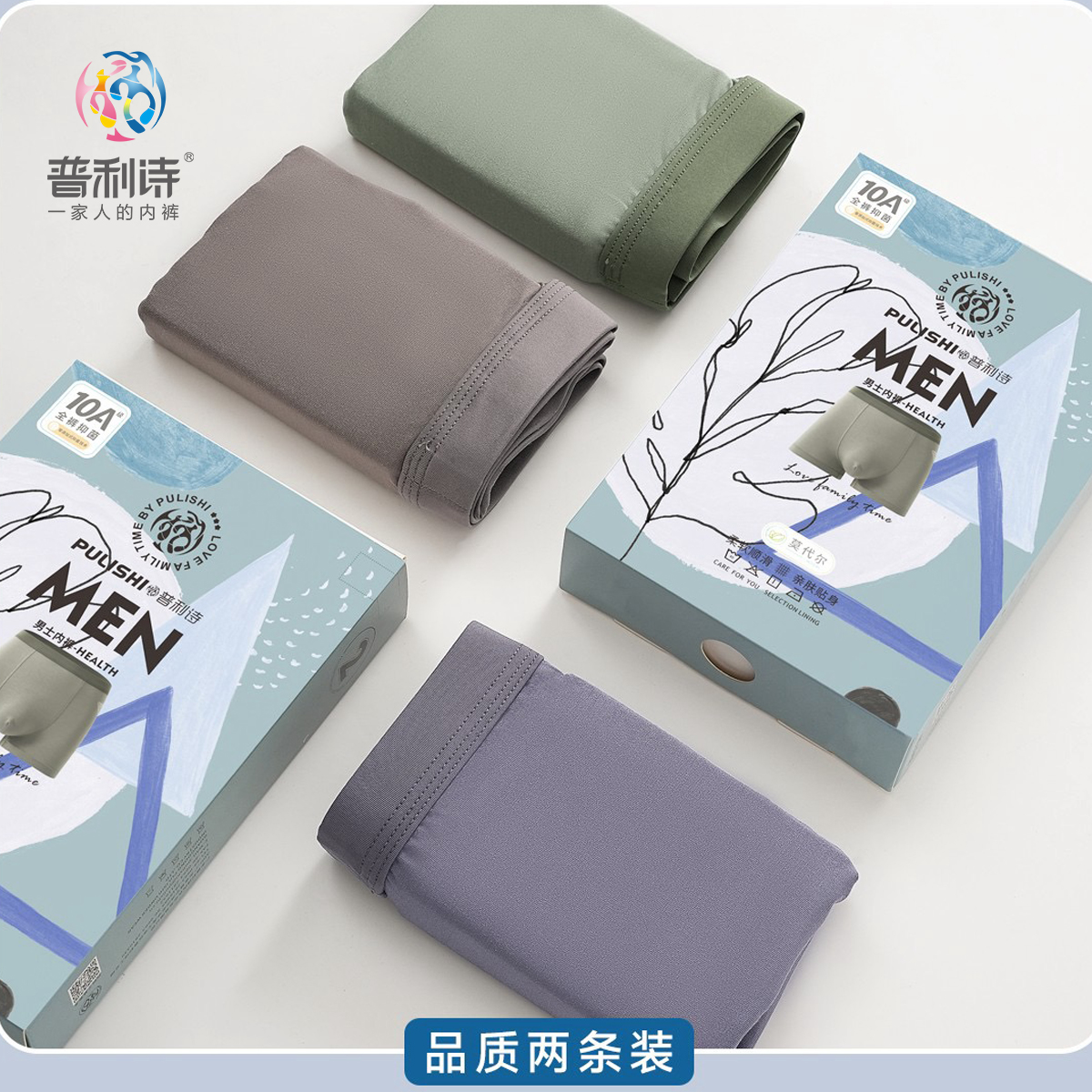 莫代尔轻薄透气10A抑菌无缝平角裤 2条装 内裤 男士 纯色 普利诗新款