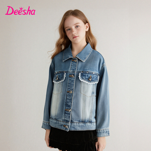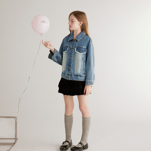 中大童宝宝儿童衬衫 新款 领上衣春秋迪莎 女童牛仔外套秋季 笛莎童装