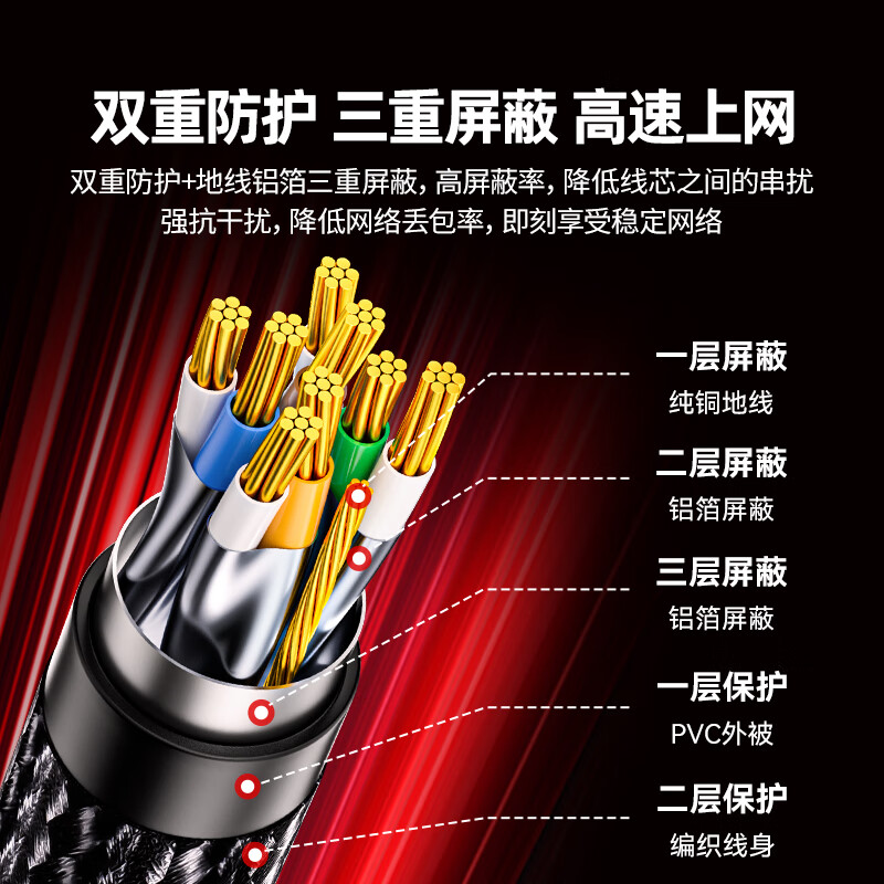 山泽八类网线千cat6七类7超六8宽带网络连接电脑高速电竞家用