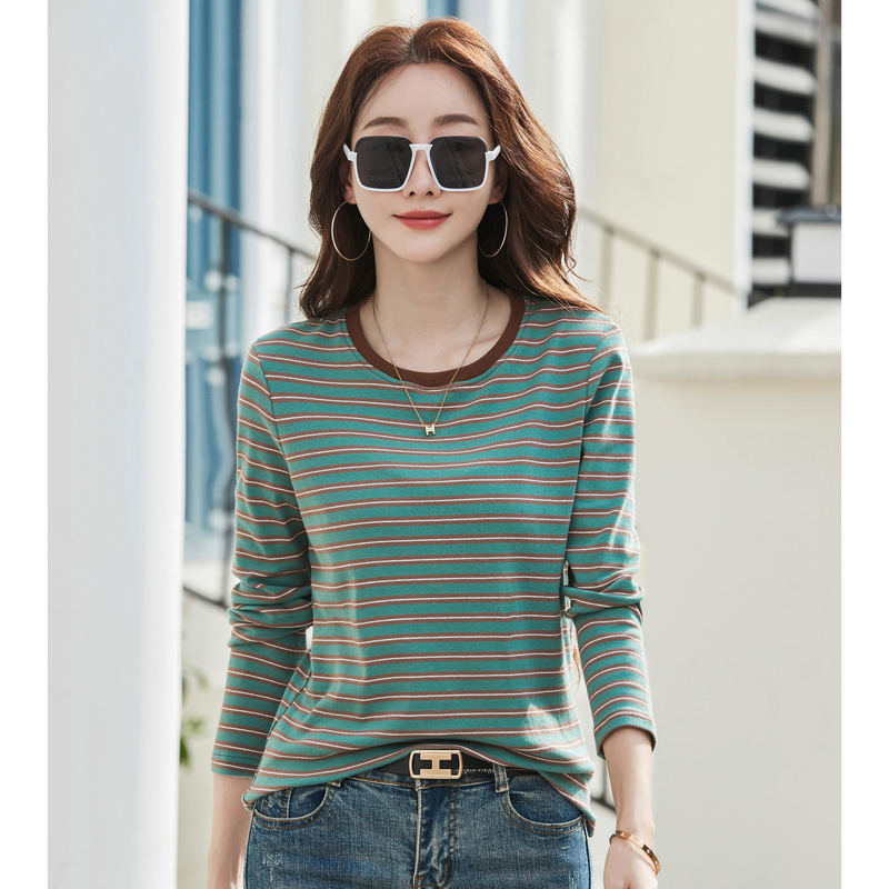 撞色条纹减龄显瘦长袖 VO真维斯女装 时尚 新款 T恤上衣女 2025秋季