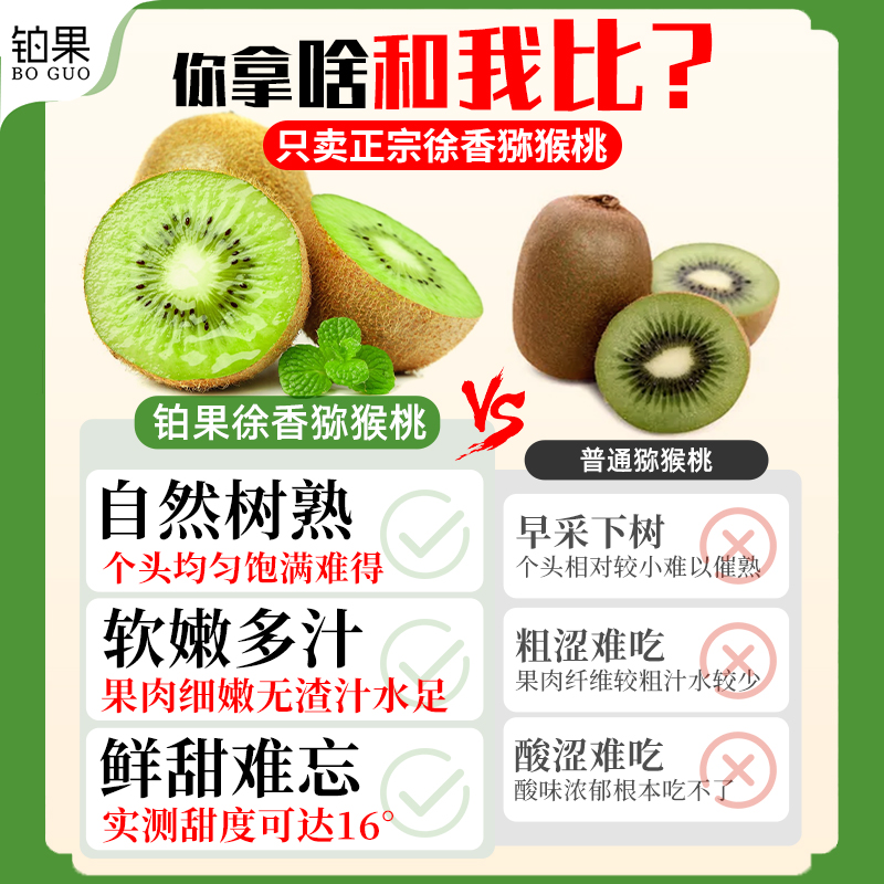 陕西徐香猕猴桃新鲜时令24粒周至绿心奇异果弥猴桃礼盒 生鲜 包邮
