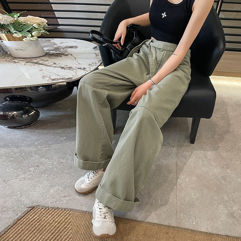 女翻边长裤 森马牛仔裤 2025秋季 新款 森柔牛仔 宽松阔腿裤 商场同款