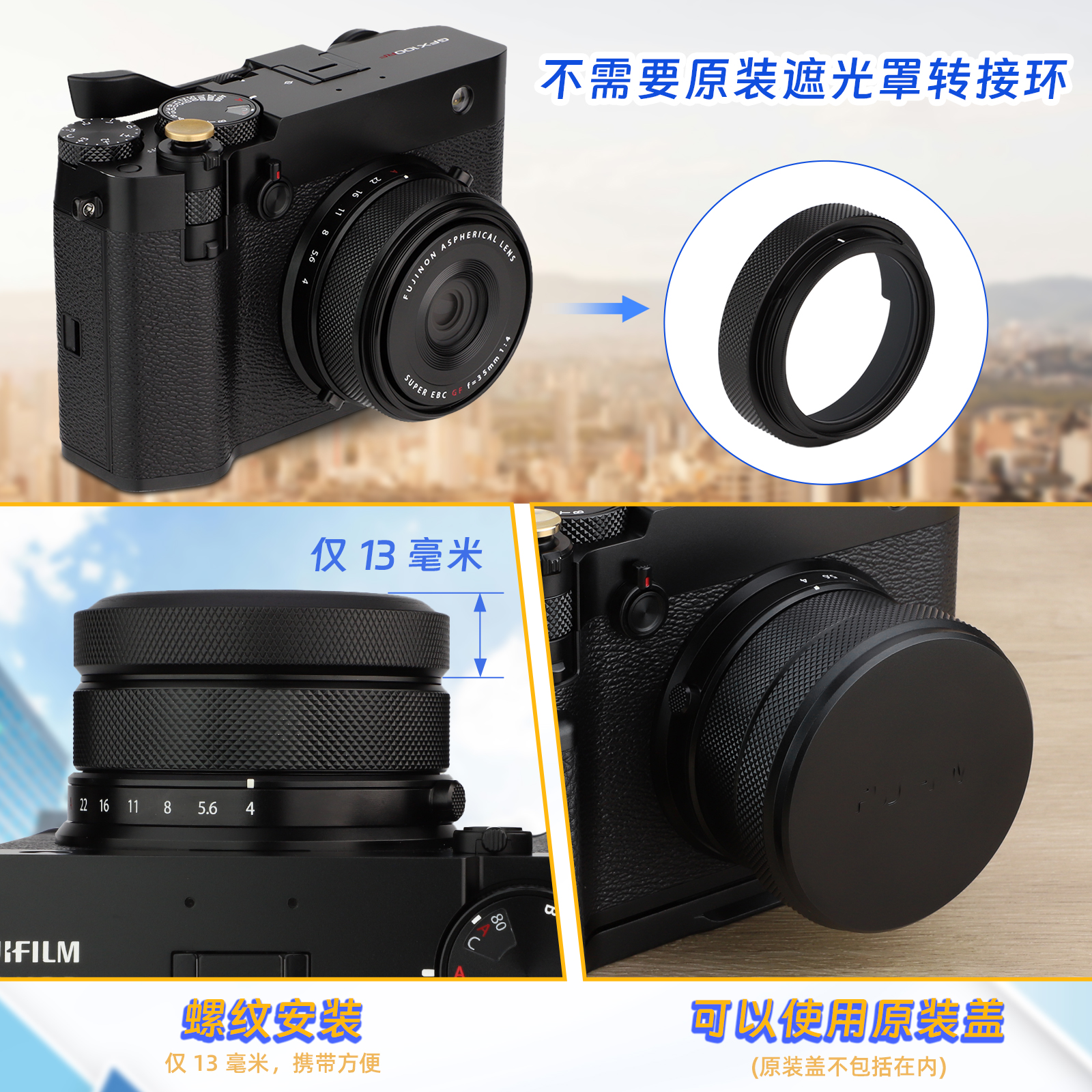 无需转接环兼容原装 号歌一体式 100rf镜头保护滤镜直接安装 UV镜适用于富士GFX100RF中画幅相机gfx 盖 超薄MC