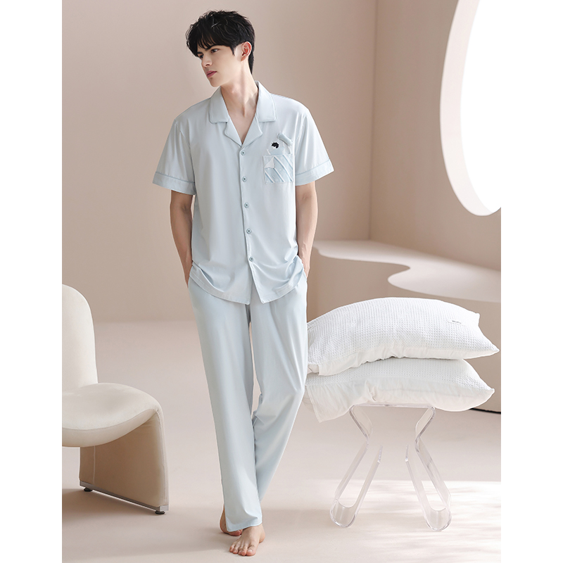 短袖 薄款 套装 男款 家居服 芬腾男士 抗菌休闲大码 睡衣天丝莱赛尔夏季