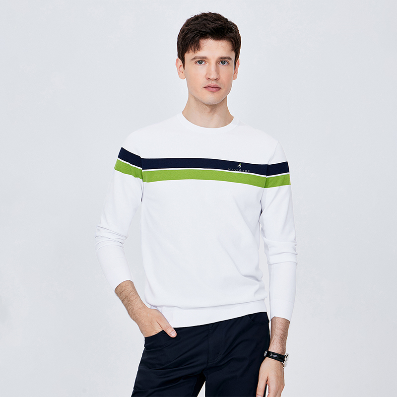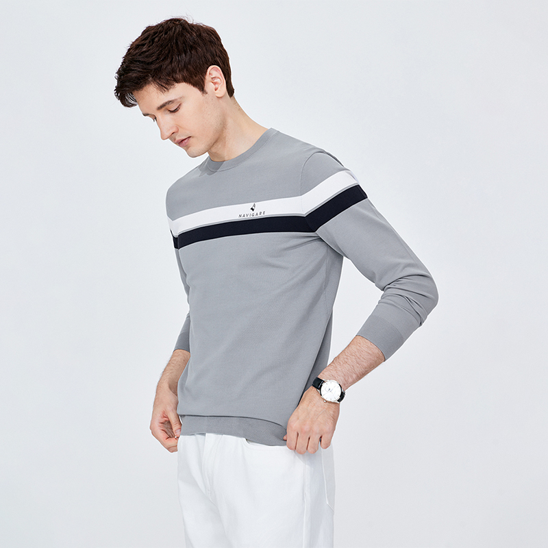 t恤男士 长袖 Navigare意大利小帆船秋季 休闲圆领打底衫 桑蚕丝